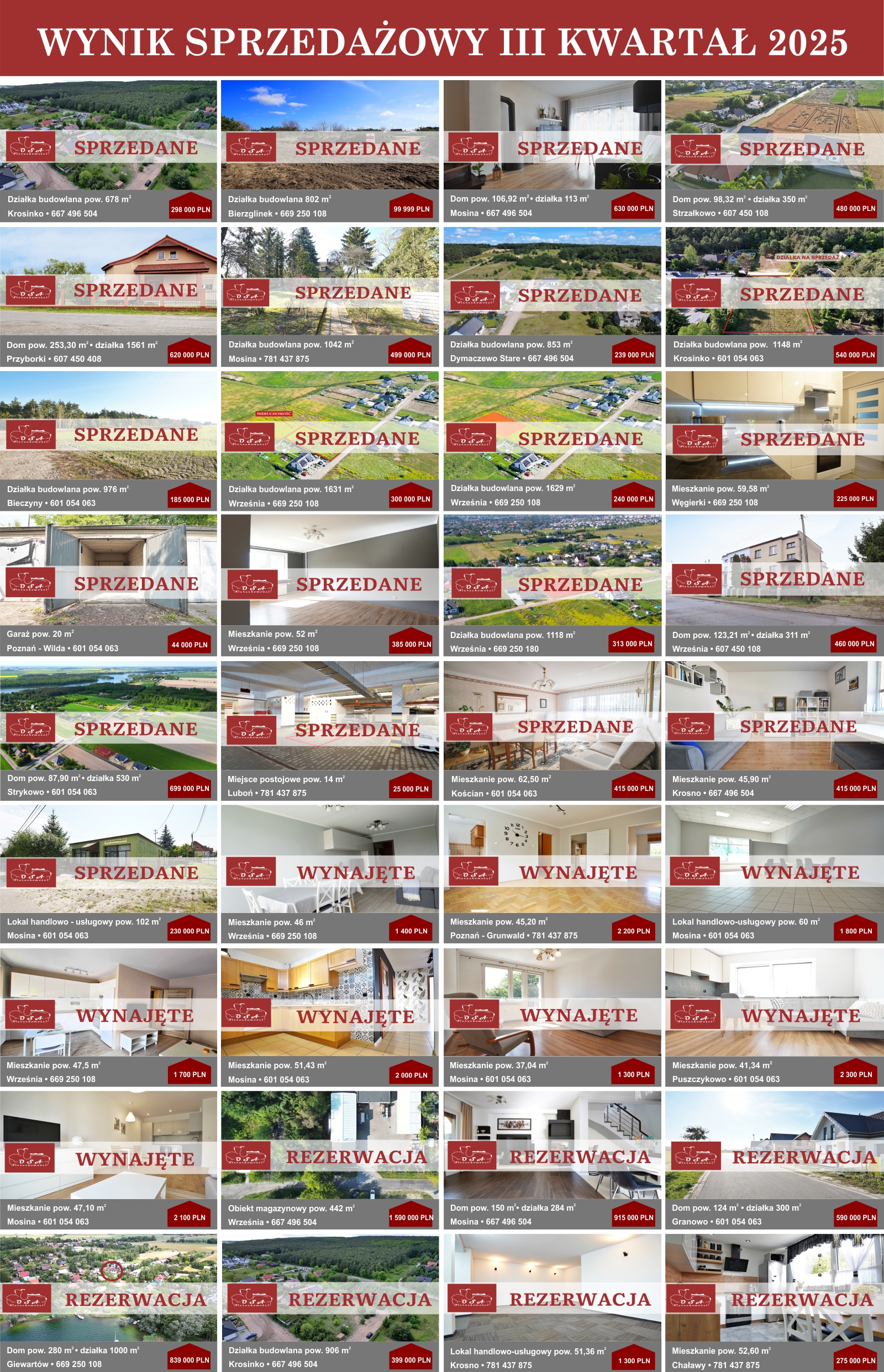 III kwartał 2025 roku był dla OSA Nieruchomości bardzo udany. W tym czasie udało się sprzedać 21 nieruchomości, wynająć 8 lokali, a dodatkowo podpisano 7 umów przedwstępnych, które zapowiadają kolejne finalizacje w najbliższym czasie. To efekt zaangażowania zespołu i skutecznego podejścia do każdej transakcji.
